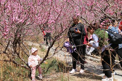 一抹抹溫暖明媚甚至跳躍著的桃紅,醉了眼簾,醉了心田。此情此景,掏出手機(jī),隨手按下快門(mén),就是一幅絕美的春日桃花圖,想不流連忘返都難。一彎春水,一場(chǎng)花事,引來(lái)眾多市民、游客前來(lái)觀賞打卡,大家在桃花樹(shù)下擺著各種造型,或拍照,或拍短視頻,還有的在這醉人的花海里唱起了歌,跳起了舞,縱享春日大美時(shí)光。