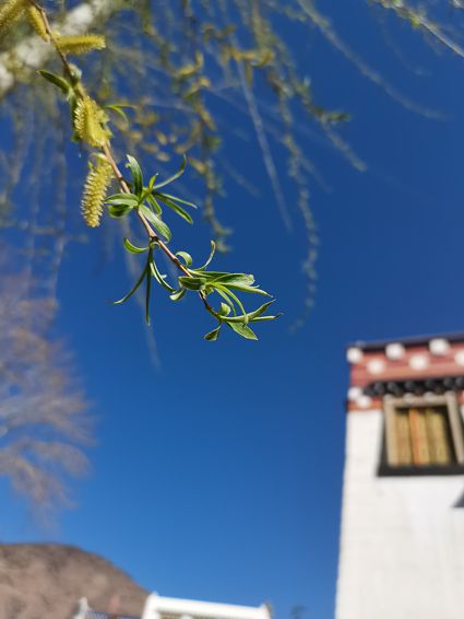 三月春潮翻涌,和暢春風(fēng)吹出“香巴拉”春日序曲。走進(jìn)鄉(xiāng)城縣青德鎮(zhèn)仲德村,“睡醒”的青稞小麥簇?fù)碓谔镩g地頭不住地冒頭吐綠,婀娜的柳樹枝條在陣陣拂過的惠風(fēng)中跳起了熱情的桑巴舞,不遠(yuǎn)處櫻桃花競相綻放、淡粉爭妍,桃花、白楊也不甘于后,抽芽的、含苞待放的、迎春綻放的,好不熱鬧……山河將春風(fēng)釀成千言萬語“問候”了“香巴拉”每一個角落,定格了春的味道。
