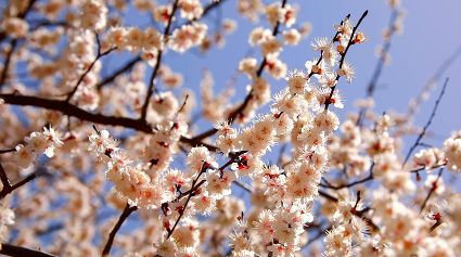 千畝桃林灼灼盛放,桃果初露尖尖,引來花雨翩躚,枝丫顫顫仿佛一幅絕美畫卷令人陶醉。