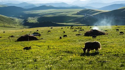 有人說,一生一定要去一次扎溪卡草原,草原和藍天,牛羊和草地,河流蜿蜒前行,微風吹過,草原牧區(qū)悠揚婉轉(zhuǎn)。
