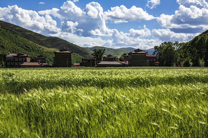然后行走在山水之間,擁抱大自然,尋找屬于自己的“詩和遠(yuǎn)方”。油綠的青稞、小麥,散發(fā)出濃郁的田園風(fēng)味;天邊群山起伏,磅礴的氣勢瞬間感覺人在自然面前實(shí)在太渺?。粠づ顸c(diǎn)綴著開滿野花的牧場,牦牛哞鳴,一片生機(jī),細(xì)細(xì)體會(huì)牧民“逐水草而居”的生存智慧......