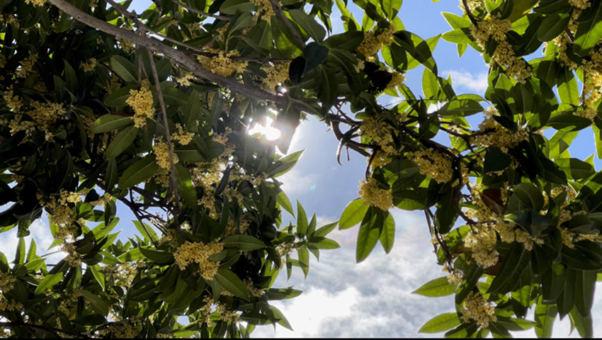 九月的鵬城巴塘,大街小巷叢桂怒放,點點桂花密密匝匝地簇生于葉腋或攢聚于枝頭,清香彌散。清涼的秋風攜著醉人的花香,似乎就在不經(jīng)意間入了芳心,醉了滿城,迷了萬千。