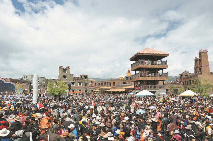 格薩爾王的故事在涉藏地區(qū)家喻戶曉、婦孺皆知,《格薩爾王傳》被稱為“東方的荷馬史詩(shī)”。格薩爾王城無疑是史詩(shī)的最美載體。格薩爾王城占地面積1455畝,總投資6.3億元,氣勢(shì)恢宏、特色獨(dú)具,是集“吃、住、行、游、購(gòu)、娛”為一體獨(dú)具特色的藏文化體驗(yàn)基地。