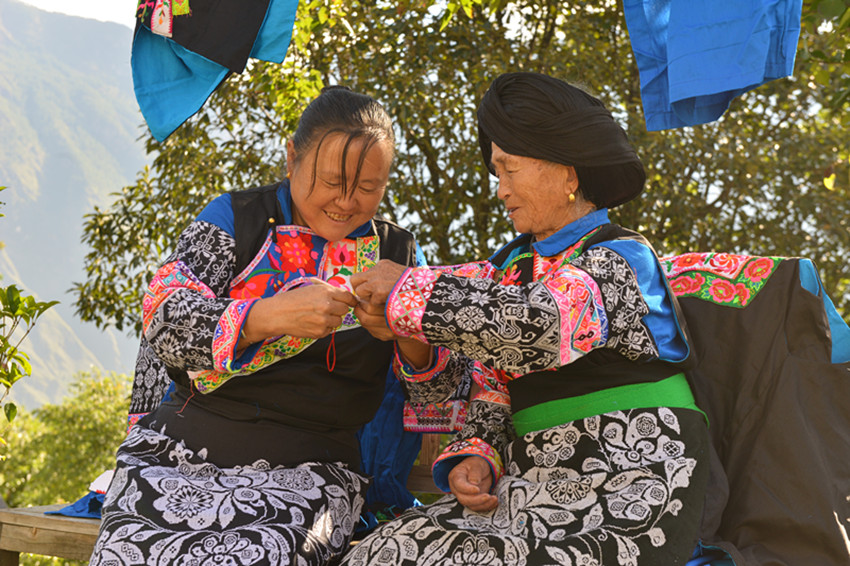 今年76歲的周光芬老人,是魁多鎮(zhèn)第五代刺繡制作技藝非遺傳承人。居住在九龍縣魁多鎮(zhèn)里伍村,老人身著傳統(tǒng)的客家服飾,在自家的院壩里編織布料,溫暖的陽(yáng)光照著老人。