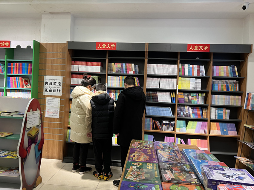 在新華書(shū)店,前來(lái)購(gòu)書(shū)的小朋友們?cè)诩议L(zhǎng)的陪伴下,正在精心挑選喜愛(ài)的圖書(shū),恬淡幸福喜悅寫(xiě)在臉上。