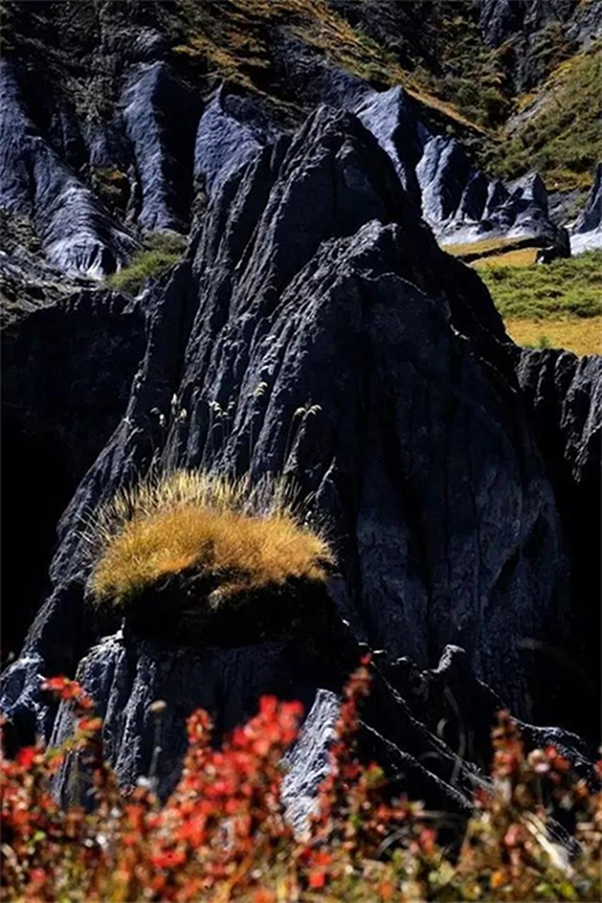 有人看過(guò)之后,說(shuō)這里美得像異星表面,有人驚嘆于那一叢叢從大地冒出的墨黑的石芽,稱其為“中國(guó)地質(zhì)百慕大”。