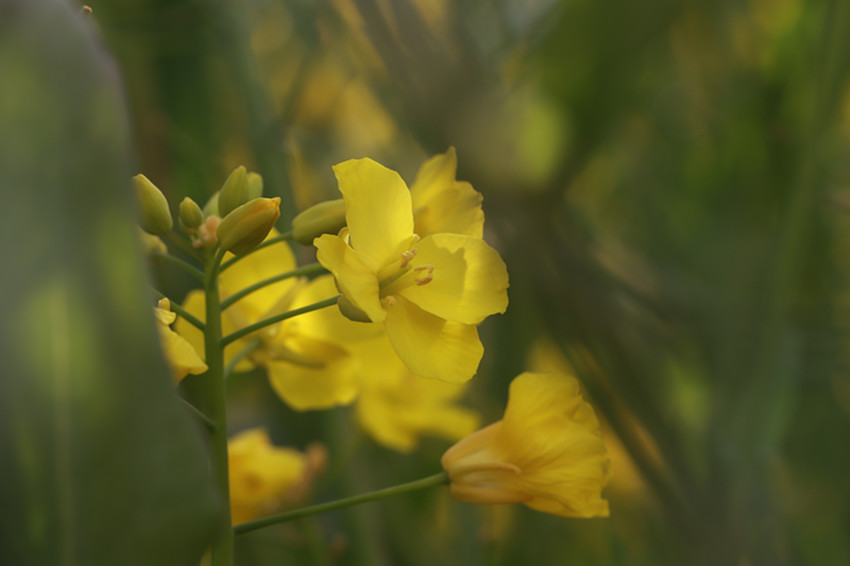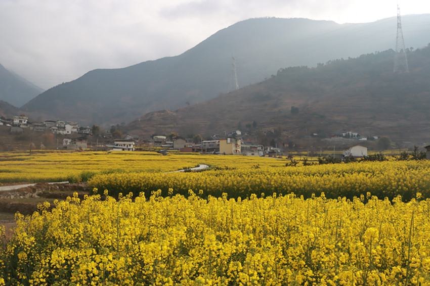 金黃的油菜花美美地填滿了整片田野,與藍(lán)天白云、村落人家相映成趣。順著田埂漫步花海,花香四溢,沁人心脾。微風(fēng)吹來(lái),一朵朵油菜花在風(fēng)中搖曳,嬌嫩的花蕊隨風(fēng)飄動(dòng),仿若身著金黃色輕紗的少女在翩翩起舞,靈動(dòng)迷人。在花叢中飛舞的蜜蜂為花田增添了靈動(dòng)和生氣,一掃冬日的沉悶,帶給人明快舒朗的好心情。成片盛開(kāi)的油菜花與前來(lái)賞花的游人相映成趣,游人們拿出手機(jī)、相機(jī),尋找最佳的角度,定格醉人美景,讓人忍不住贊嘆:好一番田園美景。