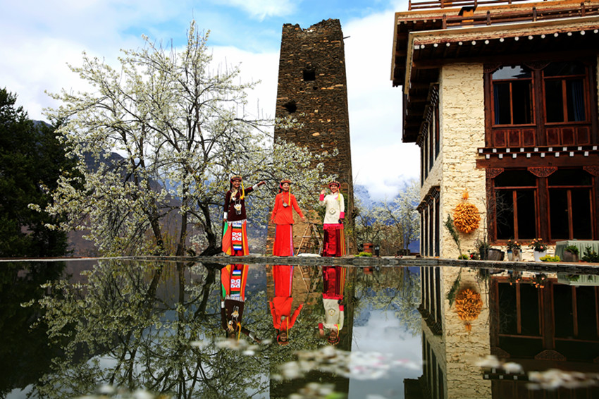 雪山、碉樓、藏寨、美人共同勾勒出一幅精美絕倫的春日藏寨梨花圖。春日里的梨花造就了丹巴的“三絕”。“一絕”即梨花配藏寨;“二絕”即梨花配碉樓;“三絕”即梨花配美人。