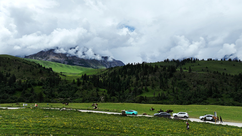 夏秋之交,藏在深閨的理塘縣格聶山風(fēng)景如畫,吸引了不少自駕、徒步、登山的游客眺雪山、賞草原。
