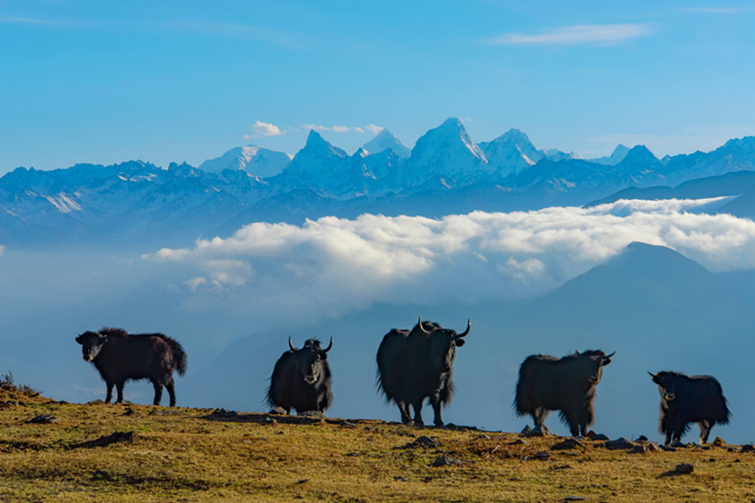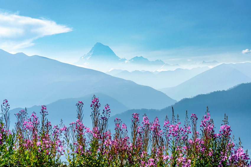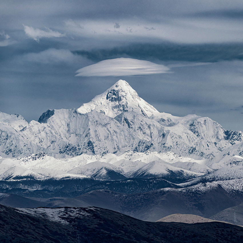 正因為貢嘎雪山具有這樣的特點,一代接一代的攝影人為了看到與眾不同的貢嘎雄姿,不辭辛勞,不斷尋找新的拍攝角度、不同的拍攝機(jī)位和發(fā)現(xiàn)新的景觀,只為從另一個視覺一睹貢嘎雪山的尊容。
