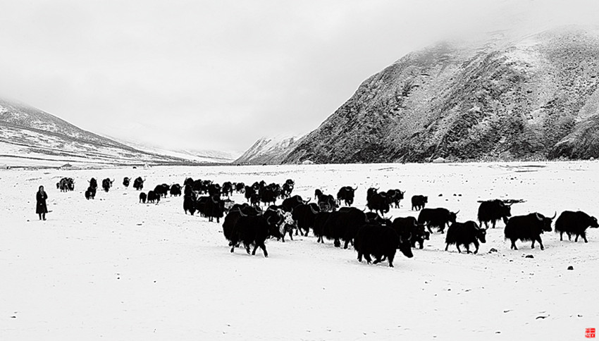 行駛在卡子拉山海拔最高處,沿途山巒起伏,冬雪飄零,銀色為世間披上一層寂靜,冬雪沒(méi)收萬(wàn)物聲音。