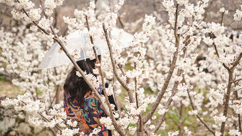 在冷磧鎮(zhèn)杵坭村,一場新雨過后,空氣中混雜著泥土與櫻桃花的芬芳,花朵們正迎春綻放,一簇簇、一串串,密密匝匝地綴滿枝頭,散發(fā)出沁人心脾的花香,蜜蜂飛舞在櫻桃花樹間,為一個月之后的豐收而忙碌。沿著觀光大道,綿延數(shù)公里的櫻桃花吸引了不少游客前來游玩打卡。
