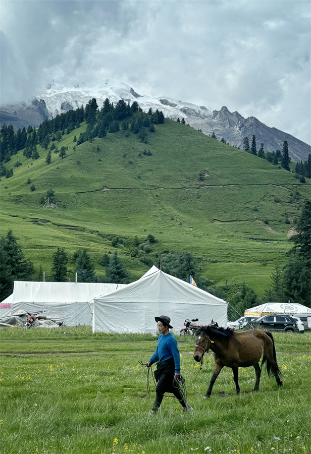 不管然日卡村還是則巴村,村民的勤勞善良也一樣讓人印象深刻。然日卡村的藏族姑娘丁真拉珍剛過18歲,卻經(jīng)常像個將軍去山上放牧和指揮100多頭牦牛,如果時間允許,她還去挖蟲草和松茸,但同時又在村里當(dāng)旅游向?qū)?,騎上摩托、牽上馬匹帶游客四處參觀,每天忙得不亦樂乎;同樣是然日卡村的小伙澤仁剛?cè)⒘宋棠饭媚?,他們從傳統(tǒng)的放牧中抽身出來,與村里許多年輕人一樣,一心一意打造鄉(xiāng)村民宿,用勤勞的雙手走上了一條嶄新的致富路;而則巴村的帥小伙甲他,今年也在村子里建起了屬于他們一家的“奔然甲他”民宿,奔然是村前一座小山的名字,甲他相信他們的日子一定如山一般堅實(shí)越過越好。