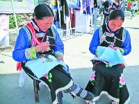 瀘定縣嵐安刺繡是純手工特色工藝品。1300多年前,羌族工藝就流傳于嵐安鄉(xiāng),刺繡工藝便是其中一種。嵐安刺繡在操作上有平繡、牽繡 、挑花和納花;工藝分圖譜和剪紙,圖譜是繡大型的如圍裙、小兒抱裙、背心等,先勾畫圖譜,按圖配色選線再繡;剪紙是用蠶繭殼剪成圖形,再固定在所繡之物上,配色選線繡,所繡之物多為涉獵帽子、鞋子、婦女的針插子、扇插子等。主要繡字、花、草、樹、鳥、獸、昆蟲、山水等。全鄉(xiāng)有800余農戶,每戶都有一兩人會從事手工刺繡。刺繡產品可作贈送品、商品、旅游紀念品及各種裝飾品。(徐慧 文/圖)