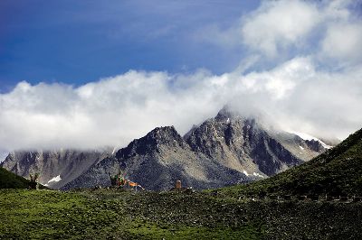 玉科草原位于四川甘孜州道孚縣境內(nèi),距縣城65千米,融藍(lán)天、白云、雪山、林木、草原、溪流為一體,被譽(yù)為“康巴阿勒泰”。