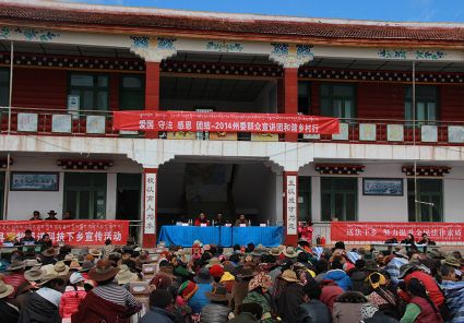在此次宣講活動中,我州建立了州、縣、鄉(xiāng)、村“四級”宣講網(wǎng)絡(luò),將群眾宣傳教育與群眾工作全覆蓋、法治甘孜、創(chuàng)建全國民族團結(jié)進步示范州等活動有機結(jié)合,突出主題宣講,注重特色宣講和典型宣講,創(chuàng)造性地啟用了“草根宣講員”以及面對面“1+N”宣講,派會當?shù)卣Z言的宣講老師進行宣講,形成了層次分明、重點突出的立體宣講體系,實現(xiàn)了從剛性宣教向柔性宣教、從說教向寓教、從蜻蜓點水向潛入內(nèi)心的“三個轉(zhuǎn)變”。