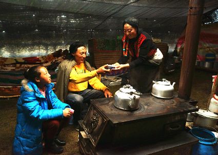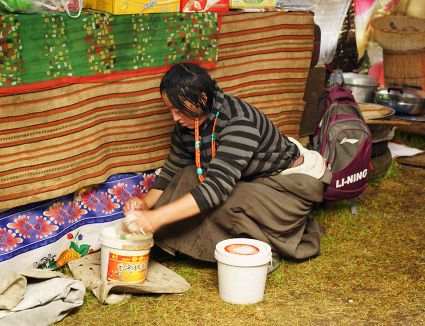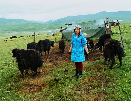 達珍和她的丈夫是我州爐霍縣宗塔草原上普通的牧民,育有一對兒女,都在縣上讀書,小兒子上小學,大女兒讀初中,放暑假,11歲的女兒回到了牧場,幫助阿爸、阿媽放牧。女兒的到來,讓達珍家每一天都充滿了歡笑,7月中旬的一天,筆者來到了這里,用像機記錄了達珍的一個早晨,那是一個朝霞滿天的開始?!?郭昌平 攝影報道