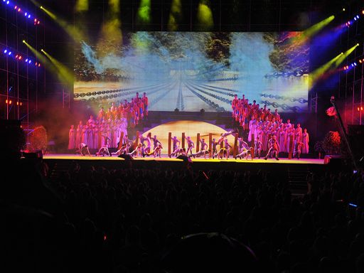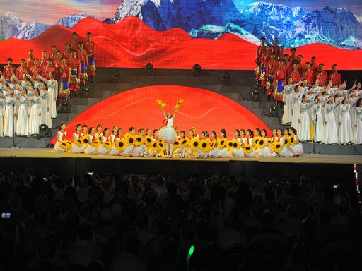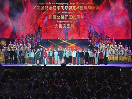 5月29日晚,一臺由中共瀘定縣委、瀘定縣人民政府主辦,四川師范大學(xué)承辦的瀘定縣紀(jì)念紅軍飛奪瀘定橋勝利80周年暨川藏公路開工65周年大型文藝晚會《永遠(yuǎn)的豐碑》在瀘定縣瀘定橋廣場震撼上演,200多名演職人員參與演出,萬余人現(xiàn)場觀看。