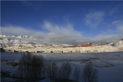 記得,離開甘孜縣城,前往滿金寺的那個(gè)早晨。同行的幾個(gè)人早早用過了早飯,趁著出發(fā)前僅有的一點(diǎn)時(shí)間,站在頂樓視野開闊的餐廳里,盼著太陽沖出來,直接把陽光大把大把地扔在大雪所覆蓋的一切事物上。天公作美,出發(fā)之前,太陽慷慨了一回。于是,一陣噼噼啪啪的快門聲響了起來,應(yīng)和著寥寥餐廳里的某種空白。