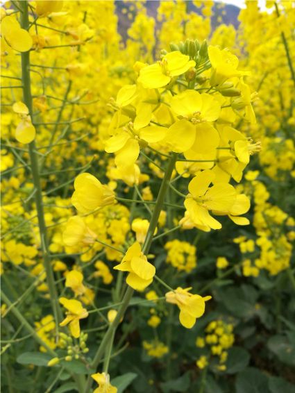 油菜花是我兒時(shí)的記憶,外婆為了生計(jì),總會(huì)在家門口的幾畝菜地里滿滿當(dāng)當(dāng)?shù)姆N上油菜,菜花開的時(shí)候,我就會(huì)端上一根長板凳、一根方板凳坐在油菜花前寫作業(yè),油菜花的清香伴我度過了整個(gè)童年。記得兒時(shí),每逢春季,田野里都會(huì)被一簇一簇的油菜花裝扮的金黃,大片的花兒披著一層金裝,偶爾一陣清風(fēng),大地上便掀起了片片的漣漪,烈陽下金光燦燦,甚是好看!