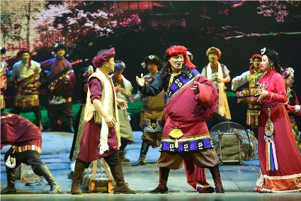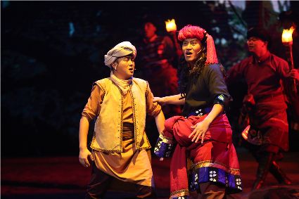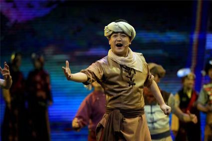 初生的音樂劇《康定情歌》是個聽話謙遜的孩童,專業(yè)人士的諄諄教誨一定會牢記在心;他也是個具有思鄉(xiāng)情結(jié)的游子,自己的一顰一笑都流露出濃郁的民族風(fēng)采;同時他也是個頑強拼搏的逐夢少年,即便汗水和淚水匯成一道道溝壑,依然挺胸不低頭,只為在明天,成為更好的自己。 (圖片由州歌舞團提供)