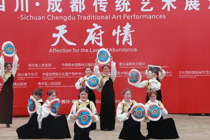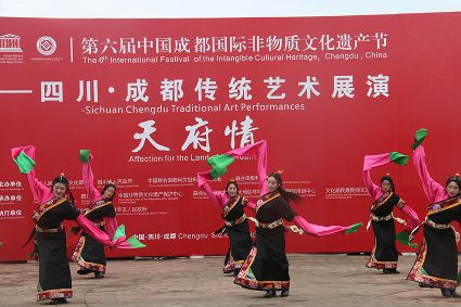 到處都是炫麗的色彩,到處都有神秘的傳承,6月10日,第六屆成都國際非遺節(jié)在成都拉開帷幕。當(dāng)天下午2時,一場我州特有的文化大戲在成都非遺博覽園西城事廣場上演。我州石渠真達鍋莊隊在此激情演繹,他們揮舞長袖,翩翩起舞,讓前來游覽的觀眾贊不絕口。