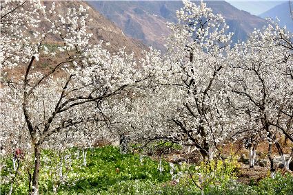 陽春三月,瀘定陽光明媚,到處生機盎然。大渡河畔的杵坭、田壩等地櫻桃花在田間競相綻放,一團團,一簇簇,一朵朵潔白的花兒緊緊簇擁著,綴滿枝頭。一陣陣微風吹來,櫻桃花隨著枝條在風中輕盈地搖曳。