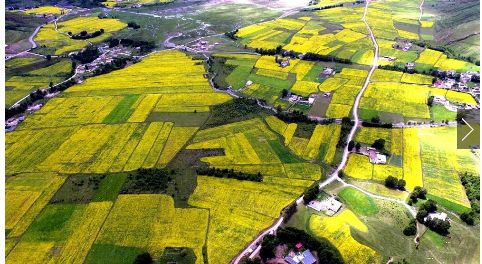 七月的川西高原是一年當中最美的季節(jié)。甘孜州雅江縣祝桑鄉(xiāng)境內(nèi)、省道303道孚縣境內(nèi),漫山遍野的油菜花,一朵朵,一簇簇,一片片,仿佛一片金色的海洋。微風拂過,綠葉上的菜花隨風搖曳,宛若千層波浪涌動。藍天白云下,金色的菜花光彩奪目,花香四溢,蜜蜂、蝴蝶在花朵上翩翩起舞,你追我趕,好一幅世外田園的高原風光,猶如一幅巨幅油畫鋪在川西大地上。