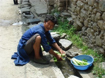 那天清晨,我們一行就乘坐曉雨哥所開(kāi)轎車(chē)從康定城出發(fā)了。從顯得很懸的山路上到位于山頂平壩的嵐安古鎮(zhèn)時(shí),才8點(diǎn)過(guò)一點(diǎn)。朝鎮(zhèn)里走去,先后見(jiàn)到了從地里背洋芋回家的小孩、從地里收了豆菽枯藤的中年人等。