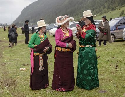 夏天是草原最美的季節(jié),道孚縣玉科草原在這個季節(jié)里正舉辦久負(fù)盛名的賽馬活動。五顏六色的彩帶飄舞在牛毛大帳篷周圍,喜慶氣氛四處洋溢。來自遠(yuǎn)近牧區(qū)的親屬也專程趕來玉科草原訪親會友,參與賽馬角逐,濃郁的民族盛會令人耳目一新。