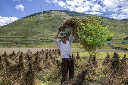 康定市姑咱鎮(zhèn)達杠村村民李翠軍一邊采摘著蘋果,一邊喜悅地告訴記者,達杠所產(chǎn)的蘋果個頭大、色澤好、吃味好、耐儲藏,到目前,全村蘋果種植面積800多畝,去年蘋果產(chǎn)量160萬斤,今年雨水好,蘋果產(chǎn)量將猛增到200萬斤以上。目前,村子里蘋果種植大戶家庭年收入過10萬元的就有20多戶。康定市將達杠村打造成川藏觀光農(nóng)業(yè)第一村。按照規(guī)劃,村里會進一步擴大蘋果種植面積,以蘋果利用為核心,發(fā)展“春賞花、夏攝影、秋摘果、冬體驗”四季觀光農(nóng)業(yè)產(chǎn)業(yè)。五谷豐登六畜興旺,甘孜高原共慶豐收。農(nóng)民豐收節(jié),它既是億萬農(nóng)民慶豐收、曬豐收的節(jié)日,也是全社會享豐收、助增收的節(jié)日;既寄托著農(nóng)民的追求、農(nóng)民的希冀,也承載著全體中華兒女的深情與追憶;中國農(nóng)民豐收節(jié),農(nóng)牧民收獲的不只是甜蜜蜜的果實,鼓起的不只是沉甸甸的荷包,更是滿滿的榮譽感、幸福感、獲得感!