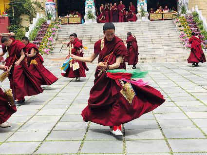 為紀念釋迦牟尼佛的誕辰(浴佛)日,康定群眾每年農歷四月八日都要舉行隆重盛大的紀念活動,稱“四月八”轉山會,南無寺的跳神活動就是其中之一。