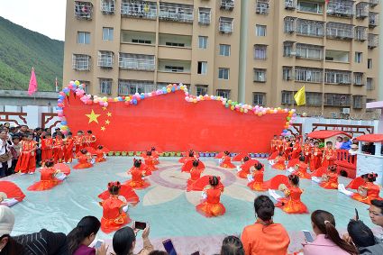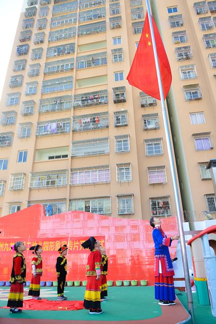 “六一”前夕,我肩挎相機(jī)走進(jìn)了熱鬧非凡的九龍縣二幼,他們正在舉行“我們在一起”文藝活動(dòng)?;顒?dòng)一開始,幾個(gè)四五歲的小小升旗手,身著民族服裝在老師的口令下莊重地走上旗臺,在激昂的國歌聲中,國旗在他們手中冉冉升起,全場行注目禮。這場景令我感動(dòng)不已,國家強(qiáng)盛,人民安康,孩子們在溫暖的陽光下茁壯成長。