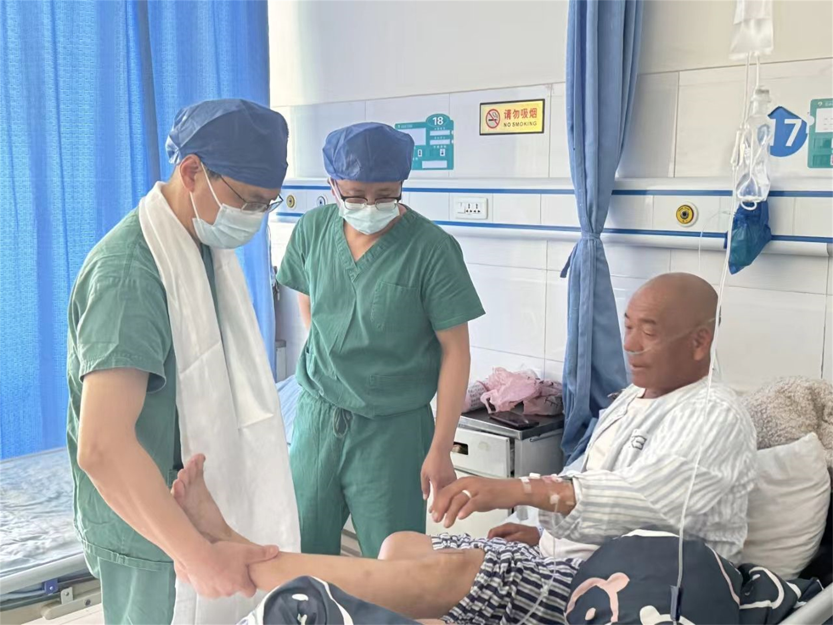 病房里和李秀文同樣幸運(yùn)的還有60歲的拉空登巴大叔,登巴大叔被膝關(guān)節(jié)疼痛困擾多年,雙腿膝關(guān)節(jié)變形,上下樓梯時(shí)痛感會(huì)更加明顯。當(dāng)天一大早,登巴大叔就從家里趕到縣醫(yī)院,做術(shù)前準(zhǔn)備?!昂荛_(kāi)心,我滿足了手術(shù)條件,希望手術(shù)順順利利!”登巴大叔激動(dòng)地說(shuō)。