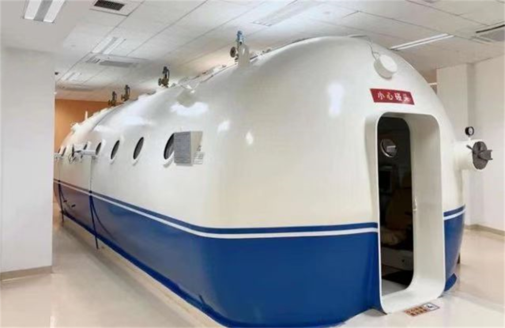 圖為外觀形似“潛水艇”的高壓氧艙。