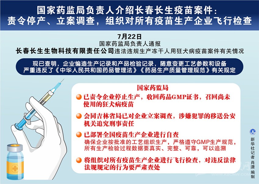 國(guó)家藥監(jiān)局通報(bào)長(zhǎng)春長(zhǎng)生違法違規(guī)生產(chǎn)狂犬病疫苗案件有關(guān)情況