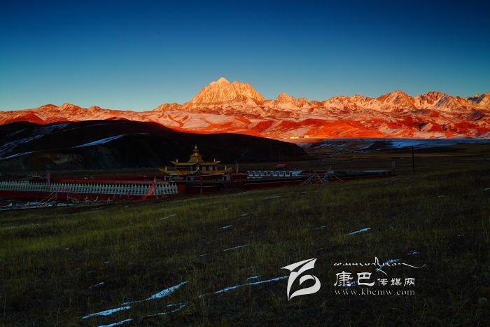 冬日的塔公草原。夕陽下,一個(gè)人緩步行在高低起伏、荒去了的草地。