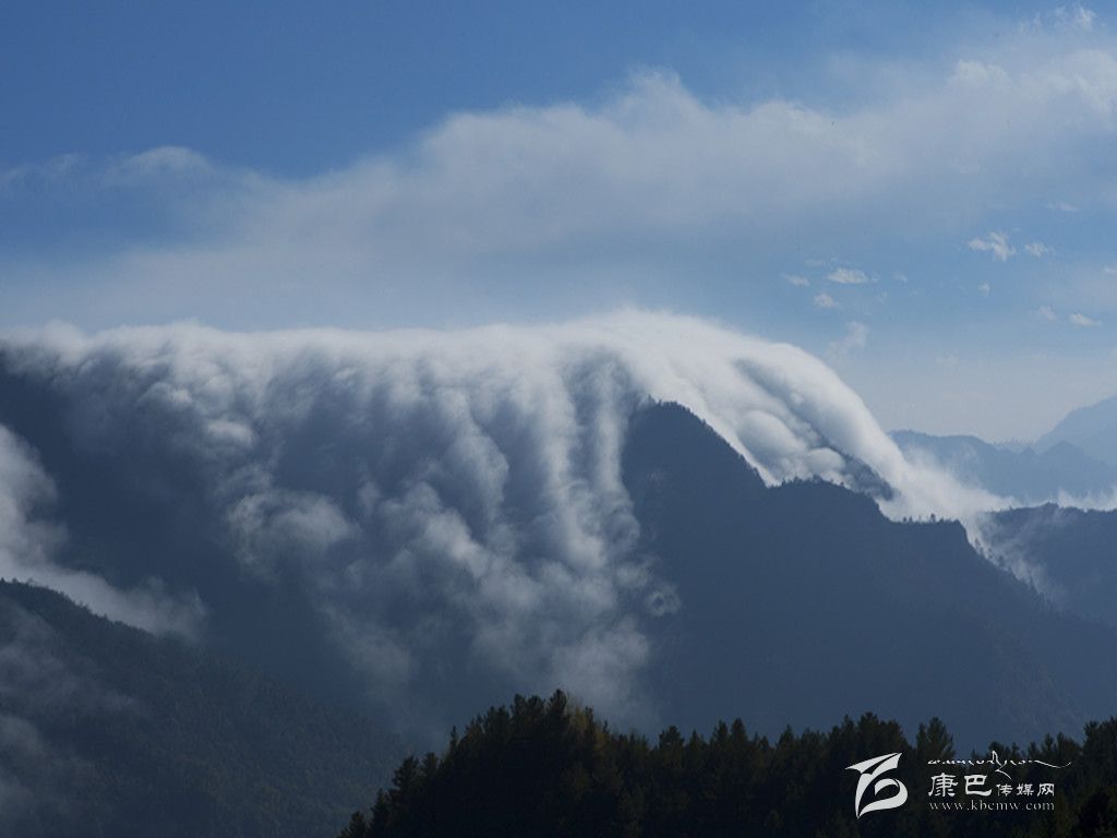 牛背山最為變幻無窮的,當(dāng)屬云海。從山頂向下望去,四周云海茫茫,時而舒緩,時而洶涌,潮起潮落。當(dāng)云海移至深谷處,會因?yàn)榫薮蟮穆洳疃纬善俨荚?,似飛瀑從天而降,氣勢磅礴,蔚為壯觀。“寵辱不驚,閑看庭前花開花落;去留無意,漫隨天外云卷云舒”。云卷云舒的景象,大概只有在牛背山才能被演繹得如此淋漓盡致吧。難怪有人這樣描述牛背山:“泥巴山、瓦屋山、峨眉山、夾金山、四姑娘山和二郎山在前, 貢嘎雪山在側(cè), 大渡河大峽谷在后, 幾乎天府之國的所有名山峻嶺在此時都變成了玲瓏盆景。而翻滾的云霧之下, 群山丘陵逐級降低, 緩緩融入稻浪翻滾的天府平原。”