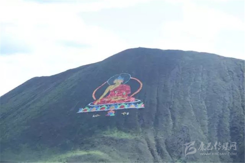 看,佛主正在向我們微笑,這尊巨大的佛像是由然梯寺的活佛使用4萬根經(jīng)幡,在沒有使用任何輔助工具的情況下花費(fèi)一個(gè)月的時(shí)間創(chuàng)作而成。每當(dāng)風(fēng)吹過,大佛就會隨風(fēng)飄舞。就如同在向四面八方散發(fā)佛光一樣。