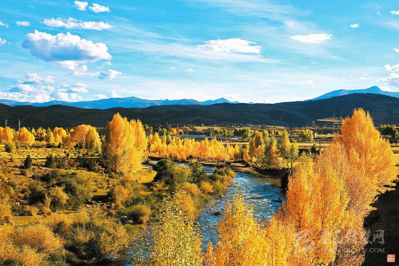 本網(wǎng)訊 10月7日,隨著深秋的到來,位于川西高原藏區(qū)的理塘縣甲洼鎮(zhèn)成片白楊樹由綠變黃,藍藍的天空、寧靜的藏寨,構成了一幅美麗鄉(xiāng)村畫卷。