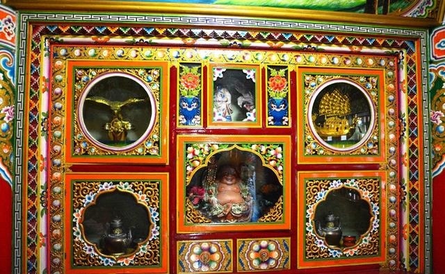 道孚民居室內(nèi)精雕細鏤,描金繪彩,每一個圖案或圖畫就是一個吉祥物或一個傳說。民居客廳陳設豪華,富麗堂皇,極顯主人的富有;經(jīng)堂供奉佛像,酥油燈長明,是家中的清靜之地;臥室多用箱式或椅式藏床,陳設溫馨而別具風情。