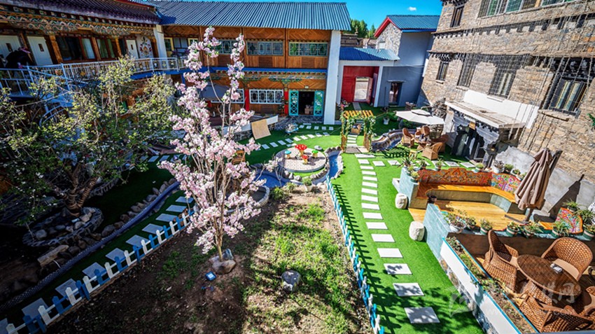 曾經(jīng)的倉(cāng)庫(kù)變成了咖啡廳,關(guān)牛的地方變成了餐廳,土司房變成了溫泉套間,四合院變成了小橋流水,雖然有些改變,但留給客人的依舊是一個(gè)傳統(tǒng)藏式四合院?!拔ㄒ桓淖兊闹皇嵌嗔诵┬氯诵率聛?lái)來(lái)往往,在這里從你的全世界路過(guò)……”石雅琴借用張嘉佳的《從你的全世界路過(guò)》的話語(yǔ),道出了她對(duì)“親愛(ài)的宅宅”的“定性”。