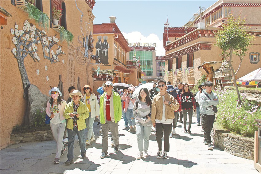 9月2日,理塘縣“勒通古鎮(zhèn)·千戶(hù)藏寨”景區(qū)游人如織,來(lái)自各地的游客暢游古鎮(zhèn),感受濃郁的藏文化。