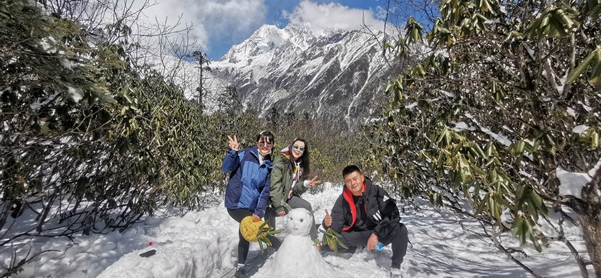 今年春節(jié)期間,我州A級(jí)旅游景區(qū)共接待游客10.96萬人次,實(shí)現(xiàn)門票收入319.86萬元。圖為游客在海螺溝景區(qū)盡享冬日樂趣。