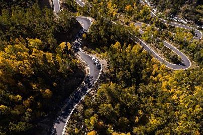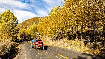 秋色與藍(lán)天相映 明珠與雪山成趣