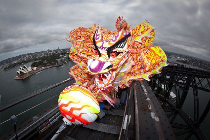 中國(guó)傳統(tǒng)舞龍亮相悉尼海港大橋