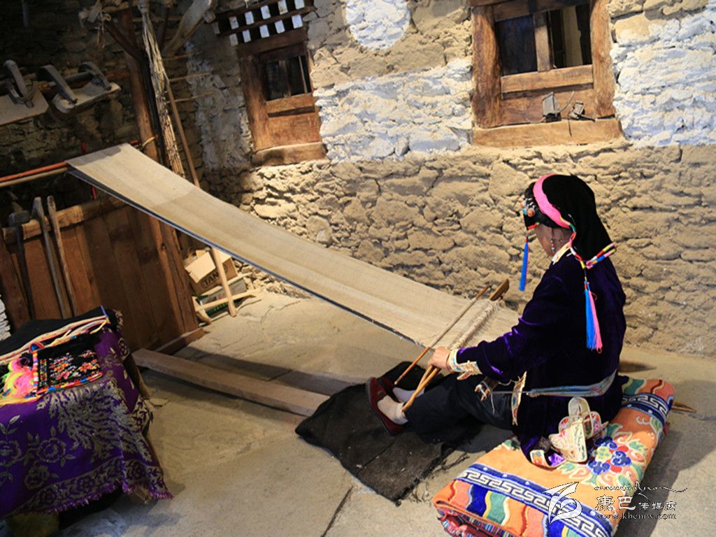 穿過(guò)古樸的大門(mén),步入館中,映入眼簾的是古老的民間紡織技藝。一位藏族老阿媽端坐在古董般的織布機(jī)前,聚精會(huì)神地編織布匹,見(jiàn)到游人微笑回應(yīng),并未停下她手上的工作。年逾60的擁天秀,從十幾歲便學(xué)習(xí)織布,此間從未間斷。隨著紡織機(jī)逐漸被淘汰,擁天秀已成為傳承這門(mén)古老技藝的“活化石”。非遺展示館開(kāi)館時(shí),擁天秀主動(dòng)表示,愿在此地免費(fèi)為游客展示丹巴紡織技藝。 “我喜歡丹巴刺繡和紡織工藝,平時(shí)在家里也會(huì)做,現(xiàn)在眼睛不很好,所以刺繡沒(méi)有辦法做了。游客們很喜歡在這里看我織布,他們有什么問(wèn)題,我都會(huì)給他們講解。”古老的嘉絨紡織技術(shù),通過(guò)擁天秀的雙手,漸漸被人們熟知,無(wú)數(shù)張游人與她的合影也被傳至網(wǎng)絡(luò)。經(jīng)她現(xiàn)場(chǎng)紡織,價(jià)值600元一匹的純手工布銷(xiāo)量也節(jié)節(jié)攀升,擁天秀研習(xí)多年的手工活在展示館中終于有了“用武之地”。