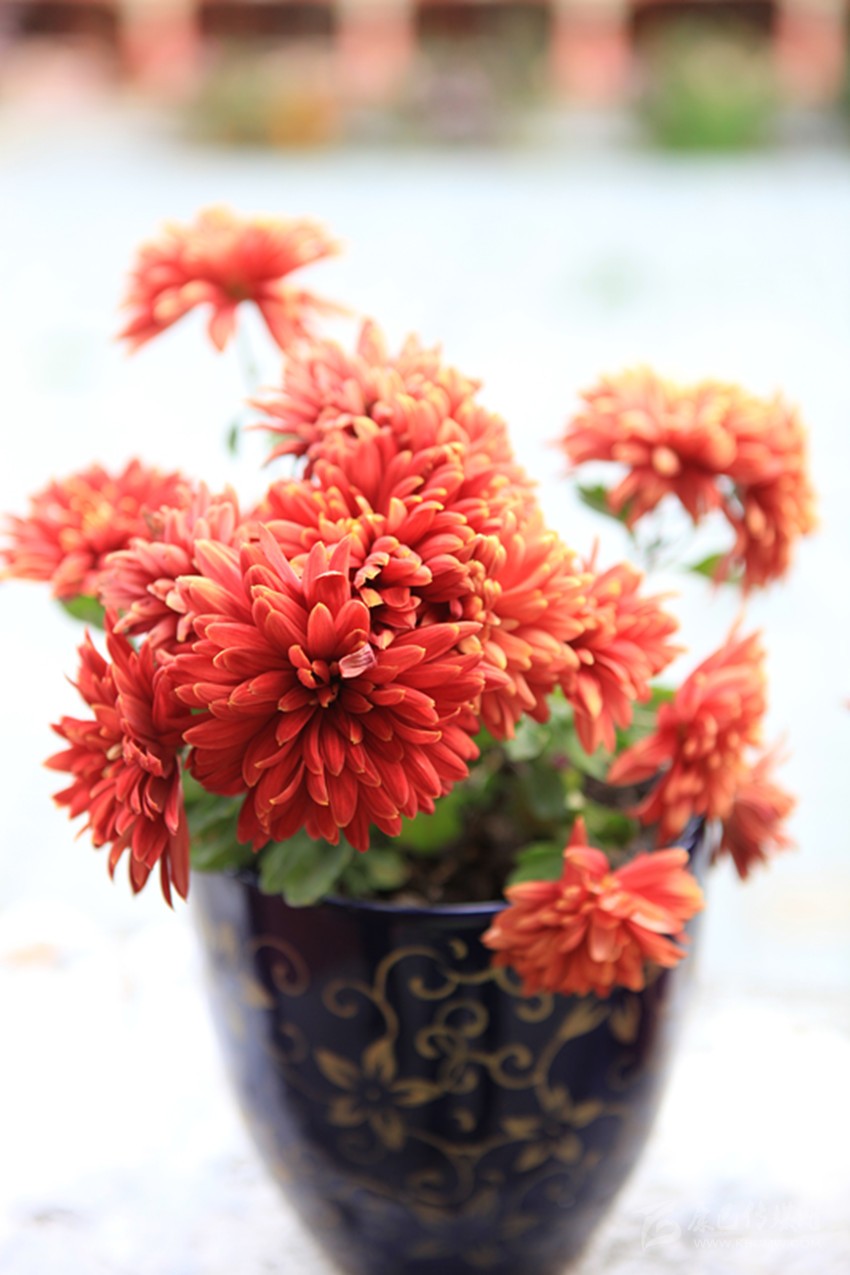 走進(jìn)南無寺的大四合院,正在群開的花有格?;?、大麗花、孔雀草、菊花。紹英到大殿參觀的時候,我就湊到四合院庭院邊上的花壇前去拍花了。