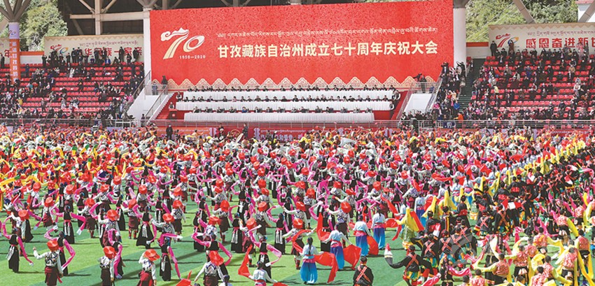 這一天,從康定東大門、南大門和北大門三個方向,不斷有馬隊(duì)排著長隊(duì)進(jìn)入康定城——沿茶馬古道,以劉格平為團(tuán)長的中央訪問團(tuán),以及西康省委書記、省人民政府主席廖志高,軍區(qū)代司令方升普等領(lǐng)導(dǎo)同志一行在人民解放軍的保衛(wèi)下來了。他們是代表中央、中央人民政府、中央領(lǐng)導(dǎo)、西南局、西南軍政委員會、西康區(qū)黨委和西康省人民政府向康區(qū)各族人民、全體干部和解放軍指戰(zhàn)員表示慰問和祝賀的;他們向自治區(qū)人民政府帶來了毛澤東主席題詞“中華人民共和國各族人民團(tuán)結(jié)起來”的錦旗,以及劉伯承、賀龍、鄧小平同志贈送的“團(tuán)結(jié)各兄弟民族共同建設(shè)新西南并鞏固西陲國防”的錦旗。