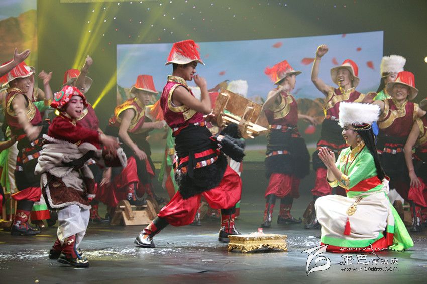 此次藏歷新年春晚被命名為“圣潔家園”,為了應(yīng)“家園”這個景,導(dǎo)演組頗有“心機(jī)”的將藏元素“和睦四瑞”搬上了舞臺,在開場舞中,兩個用石膏打造的、栩栩如生的“和睦四瑞”被演員緩緩?fù)粕衔枧_,贏得觀眾陣陣歡呼。在民間傳說中大象、猴子、白兔、貢布鳥共同發(fā)愿行持善法,貢布鳥鼓勵同伴們開始持守五戒,并一直堅持不懈動員其它眾生嚴(yán)守五戒。在它們帶動、勸說下,動物們都能漸漸做到互不損害、如理如法在木森林中和平度日,以其厲行善法之因,天人也降下和合雨水。后來,整個大地之上,莊稼豐熟、植物茂密、鮮妍之花滿目盛開,整個國家喜獲豐收、財富圓滿。晚會也是想利用“和睦四瑞”寓意人民生活團(tuán)結(jié)和睦、和平寧靜的美好愿望。